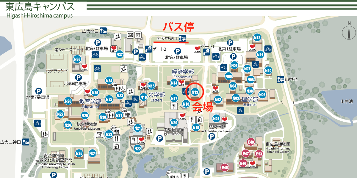 最寄りのバス停(広大中央口)から会場までの地図はこちら